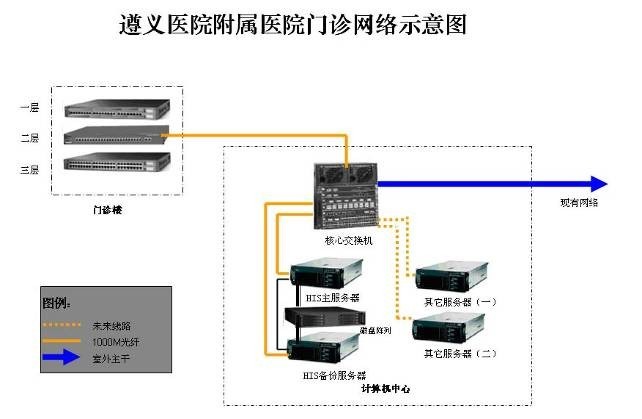遵義醫院附屬醫院是一所綜合性中心醫院,其服務(wù)網(wǎng)絡(luò )系統是以醫療、教學(xué)、科研、預防、保健及管理為目的,為實(shí)現現代化醫療、計算機資源共享和信息交流提供良好的網(wǎng)絡(luò )環(huán)境,為接入國內和國際互聯(lián)網(wǎng)提供必要的條件。醫院的網(wǎng)絡(luò )系統是以成熟、先進(jìn)、適用、高效、規范、安全、保密的網(wǎng)絡(luò )建設為目標,同時(shí)兼顧未來(lái)的發(fā)展擴充和升級。