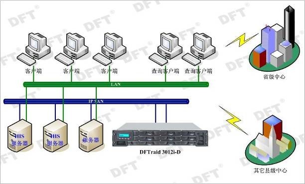 安徽省新農合項目采用分布式的解決方案,每個(gè)縣級地方都配置了一臺DFTraid 3012I磁盤(pán)陣列,使縣級的點(diǎn)在讀寫(xiě)數據時(shí)得到快速的響應,有效加快縣級醫療點(diǎn)的工作效率。同時(shí)標準的iSCSI存儲設備組成的IP SAN解決方案,方便了全省、全國醫療數據的同步建設。