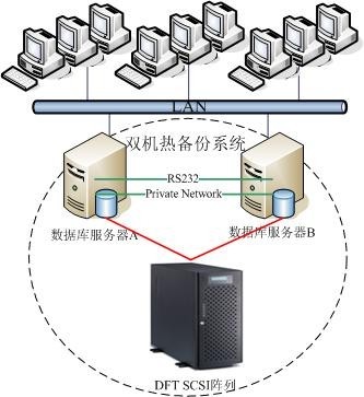 監控收費系統的建設采用DFT高可用雙機熱備系統,數據存儲采用性?xún)r(jià)比較高的DFTraid 5010 SCSI磁盤(pán)陣列,DFTraid 5010磁盤(pán)陣列具有320MB/s的傳輸性能,同時(shí)多種RAID技術(shù)可以有效保護數據的安全性。在DFT雙機熱備系統中,如果正常運行的主服務(wù)器因硬件或軟件故障導致應用程序失敗時(shí),DFT雙機系統會(huì )自動(dòng)將關(guān)鍵業(yè)務(wù)(監控收費系統)的服務(wù)托管到另一臺服務(wù)器上,使各監控收費客戶(hù)端的業(yè)務(wù)不中斷,有效地保證了兩大系統的持續運行。