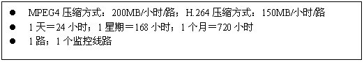 ·對存儲的容量需求彈性比較大,存儲容量的多少隨著(zhù)畫(huà)面質(zhì)量的提高、畫(huà)面尺寸的增大、視頻線(xiàn)路的增加都會(huì )成倍的增加容量需求。