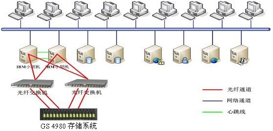 基于數字城市對信息高效率、高性能的要求,DFT工程師將DFT GS4980設置為統一管理、動(dòng)態(tài)分配的工作方式,以便于昌吉數字城市監控管理中心操作和使用。同時(shí)為了保證核心數據庫可滿(mǎn)足7*24小時(shí)高可用性服務(wù),DFT工程師又按照要求,在兩臺IBM小型機上安裝雙機軟件,并將數據保存在DFT GS4980全光纖磁盤(pán)陣列中。由于數字城市系統是市民、企業(yè)、政府之間的數據平臺,所以對于整個(gè)系統的安全提出了近乎苛刻的要求,DFT工程師又為該存儲系統設計了全冗余架構,即服務(wù)器、存儲之間有多條鏈路,保證即使鏈路中的線(xiàn)路出現故障,存儲中的數據依然可以被訪(fǎng)問(wèn)。