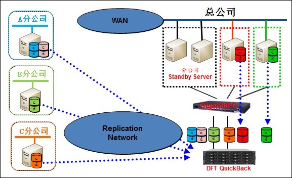 DFT QuickBack的遠程復制是直接經(jīng)由TCP/IP WAN傳輸數據,相比于傳統容災技術(shù)中的磁盤(pán)陣列復制經(jīng)WAN專(zhuān)線(xiàn)傳輸(必須搭配一對非常昂貴的網(wǎng)關(guān)轉WAN),使建設、管理與維護成本大幅降低。