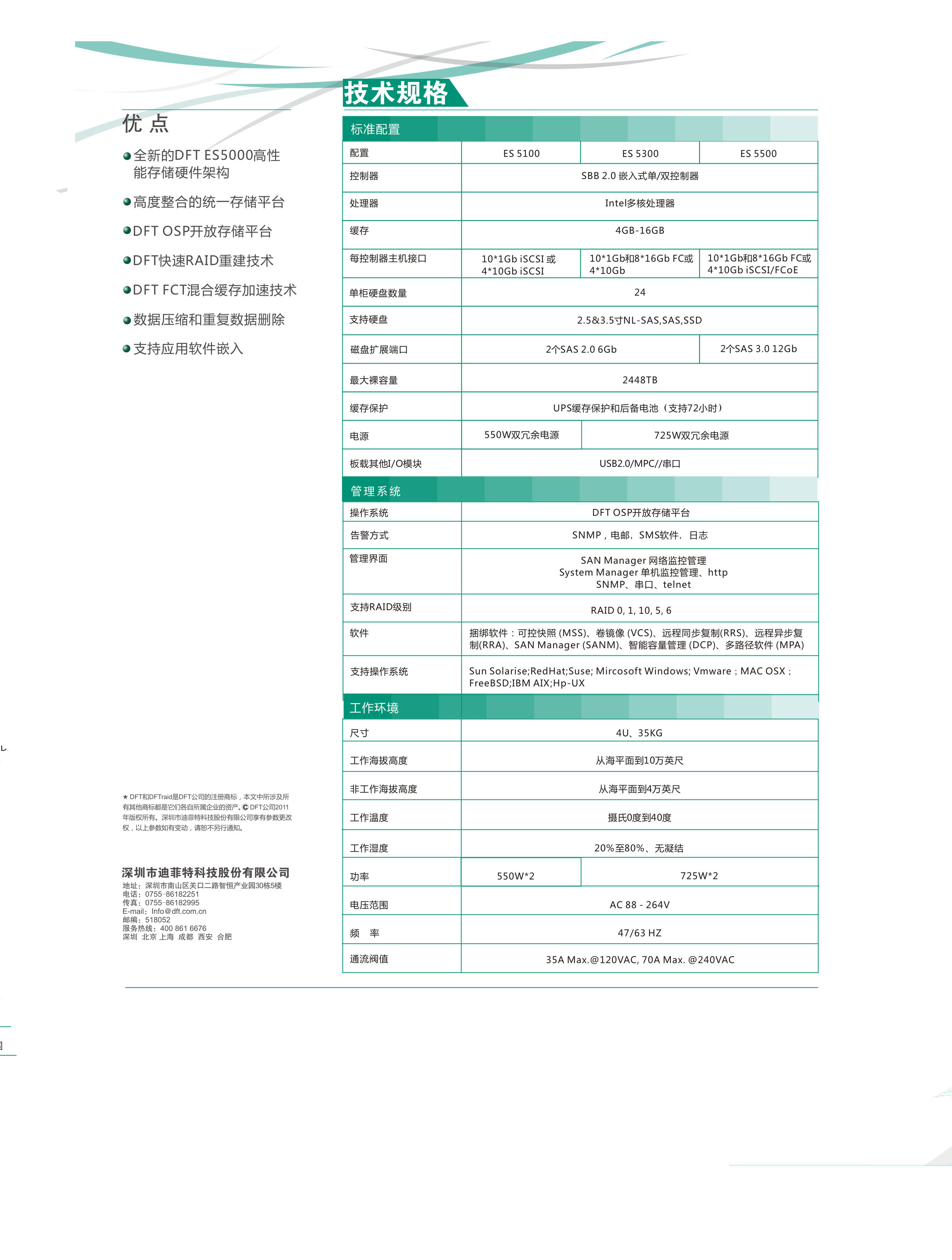 ES 5000系列存儲系統是由DFT自主研發(fā)針的第二代開(kāi)放統一存儲平臺,該系列產(chǎn)品面向對大規模集中存儲,數據中心,云計算中心而設計的中高端存儲產(chǎn)品。DFT ES5000系列存儲系統可以滿(mǎn)足市場(chǎng)上不同存儲應用的需求,可提供高度整合的存儲解決方案。